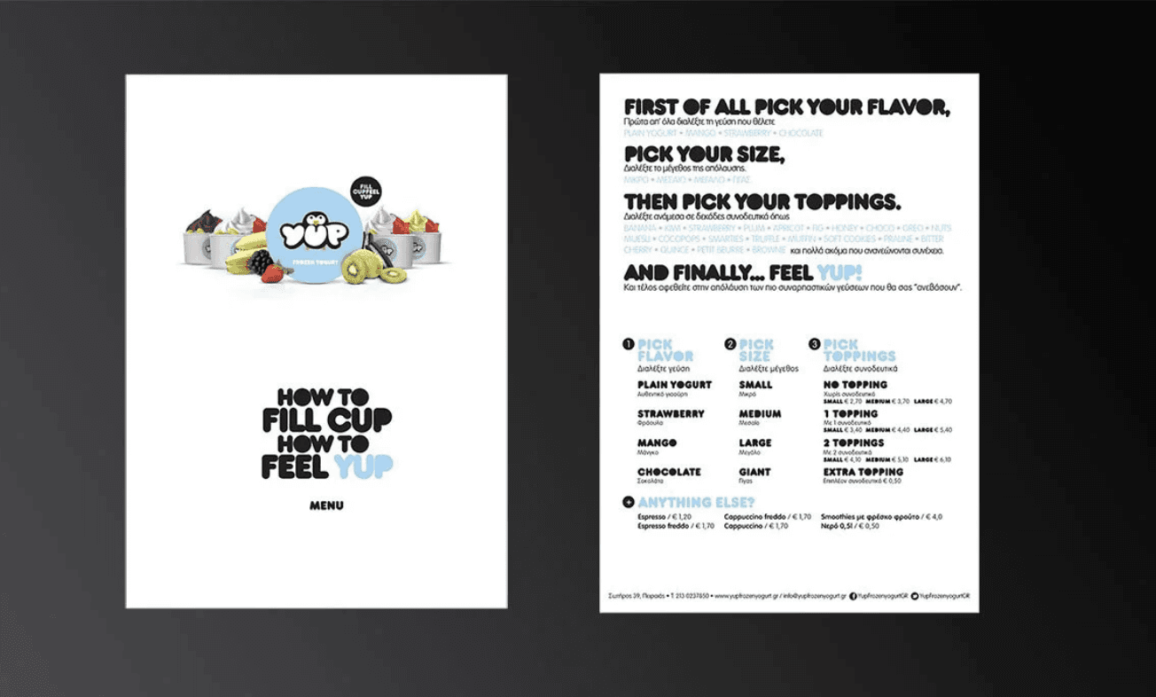 YUP is a frozen yogurt shop designed around a simple idea: choose your flavor, add your toppings, and enjoy the experience.